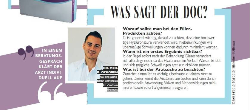 Spannender Beitrag über Hyaluronsäurefiller in der Zeitschrift „Brigitte“ mit Dr. Özgören als Experten.