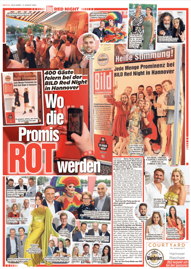 „Wo die Promis rot werden. 400 Gäste feiern bei der BILD Red Night Hannover„